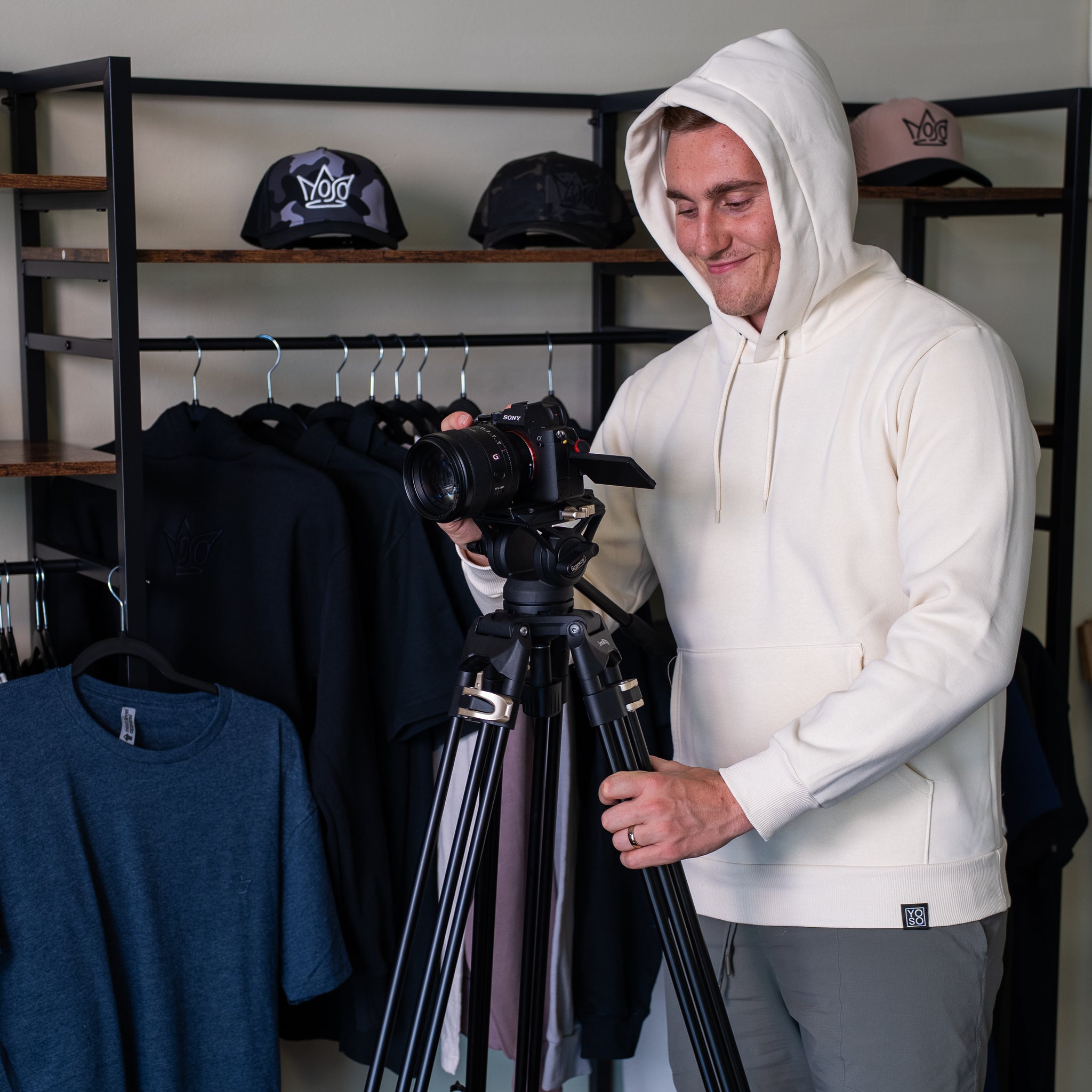 For the past several years, I've spent most of my time working on film productions, media creation, and media marketing. During the brief time off in the nonstop world of production, I began to think I wanted to try something new—to face a new challenge and hopefully see an opportunity to push myself, both in the entrepreneurial world and in a way that would do more than just focus on the bottom line. After meeting Shawn as he was at the tail end of his time at his company, and through countless ideas (some good, most bad), Shawn brought up the idea of launching a clothing brand that offered essential clothes guys could wear, with the mission of donating as much as possible to people and organizations that were furthering the kingdom. It didn't take much thinking, and so I saw an opportunity to start a brand, work with someone who has experience as an entrepreneur to learn from, and mostly just have the chance to have fun building something that meant something greater. So now, instead of just rolling cameras and editing videos (which I still do from time to time for fun), I've committed most of my time to sourcing quality apparel, producing content, and handling marketing. My goal is to grow YOSO as large as it can be, so that dozens, if not hundreds, of lives can be changed from what we've built.