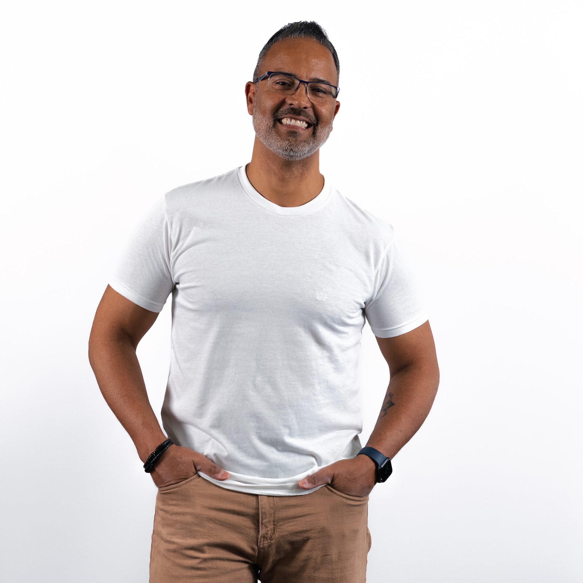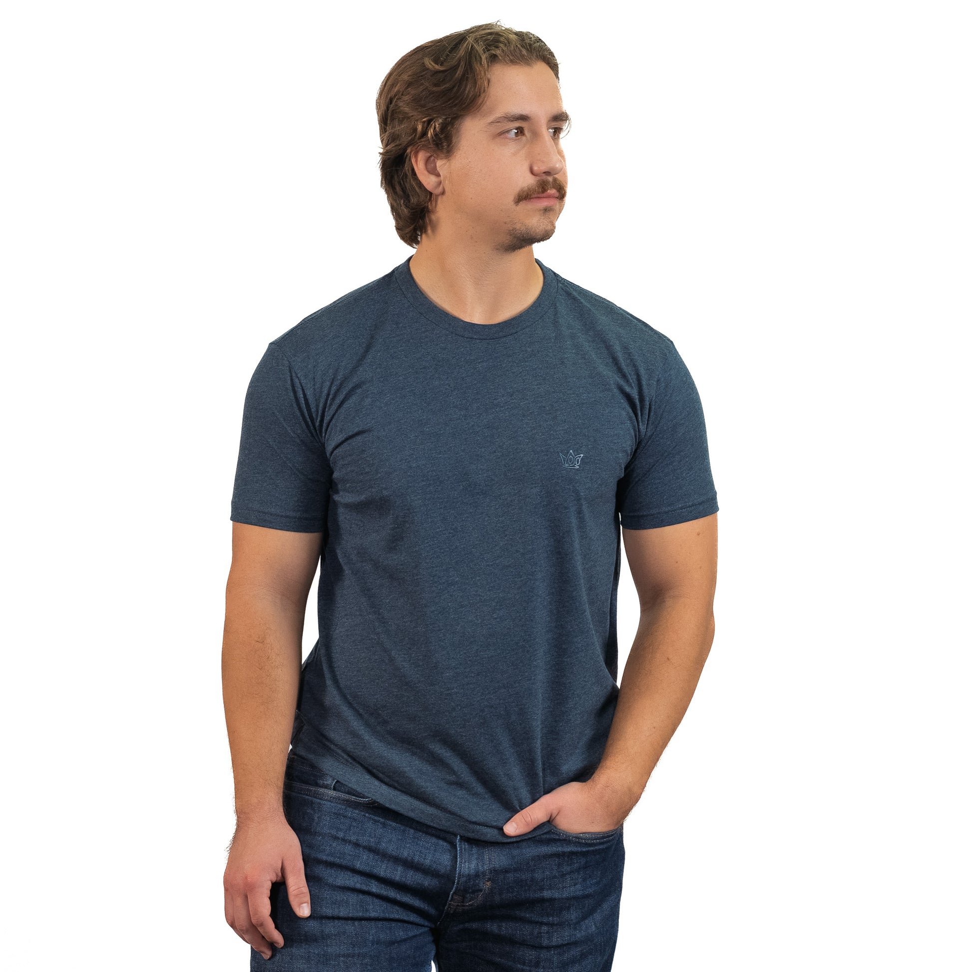 This tee simply feels good. The cotton-poly blend gives it a soft, comfortable feel with a little extra durability so it holds up to everyday wear. It has that relaxed, easy fit and it stays lightweight and breathable all day.